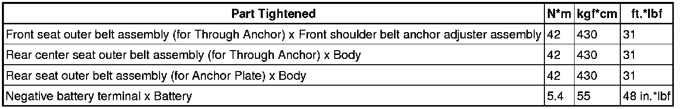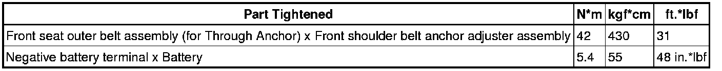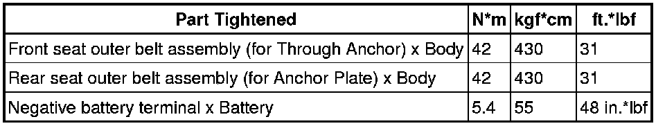SERVICE SPECIFICATIONS: INTERIOR: TORQUE SPECIFICATIONS