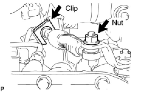 (b) Remove the clip and disconnect the control cable from the control cable bracket.