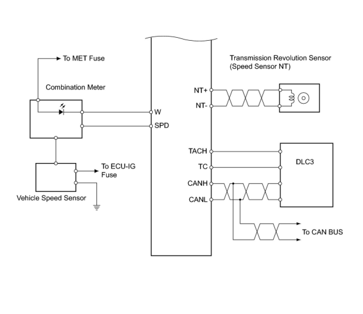 The configuration of the electronic control system in the U340E automatic transaxle is as shown in the following chart.