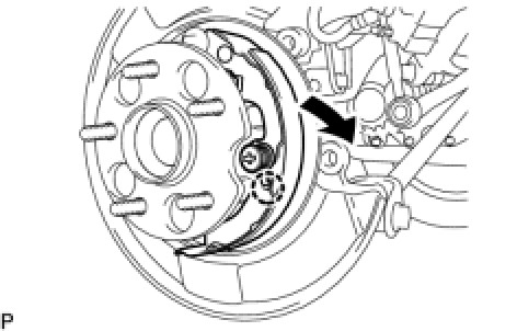 (b) Remove the No. 1 parking brake shoe assembly as shown in the illustration.