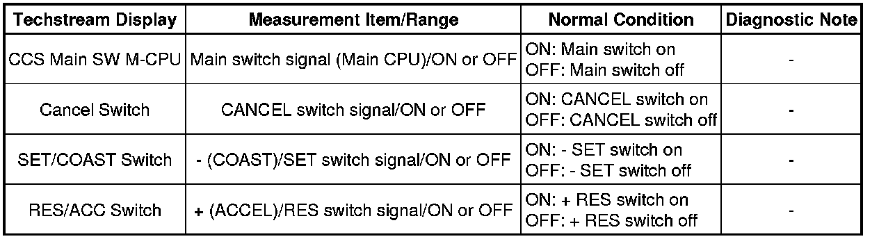 CRUISE CONTROL: CRUISE CONTROL SYSTEM: Cruise Control Switch Circuit