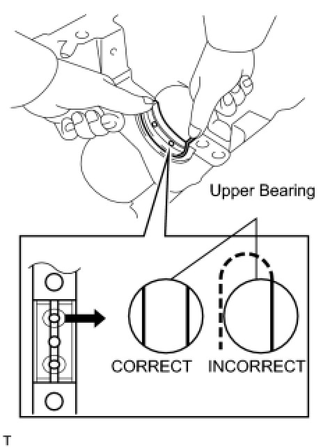 (1) Install the upper crankshaft bearings to the cylinder block as shown in the illustration.
