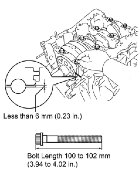If any of the main bearing cap bolts does not meet the torque specified, replace it.
