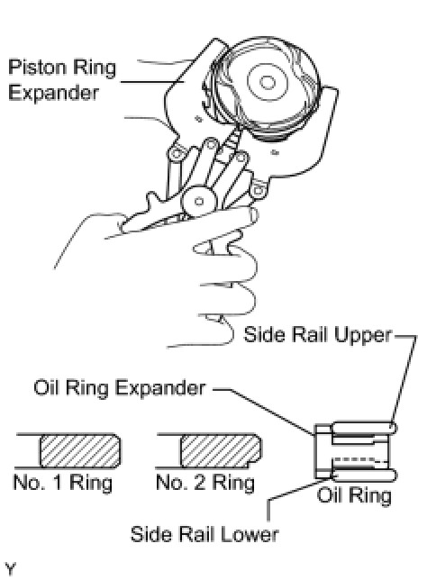 (c) Position the piston rings so that the ring ends are as shown in the illustration.