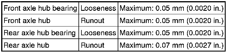 SERVICE SPECIFICATIONS: AXLE: SERVICE DATA