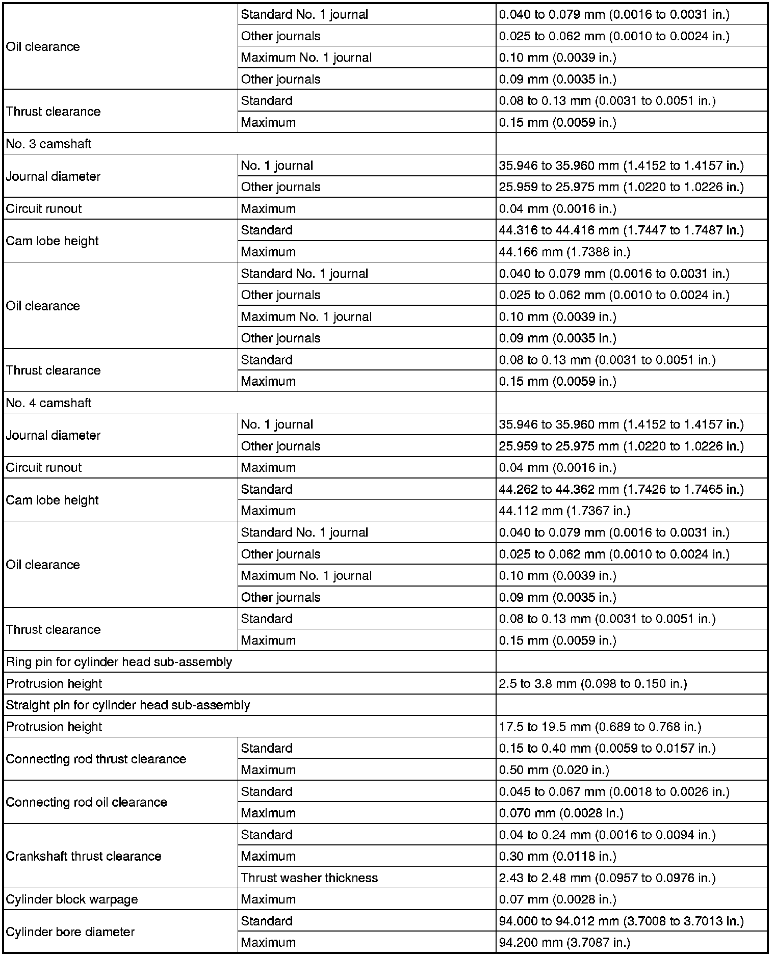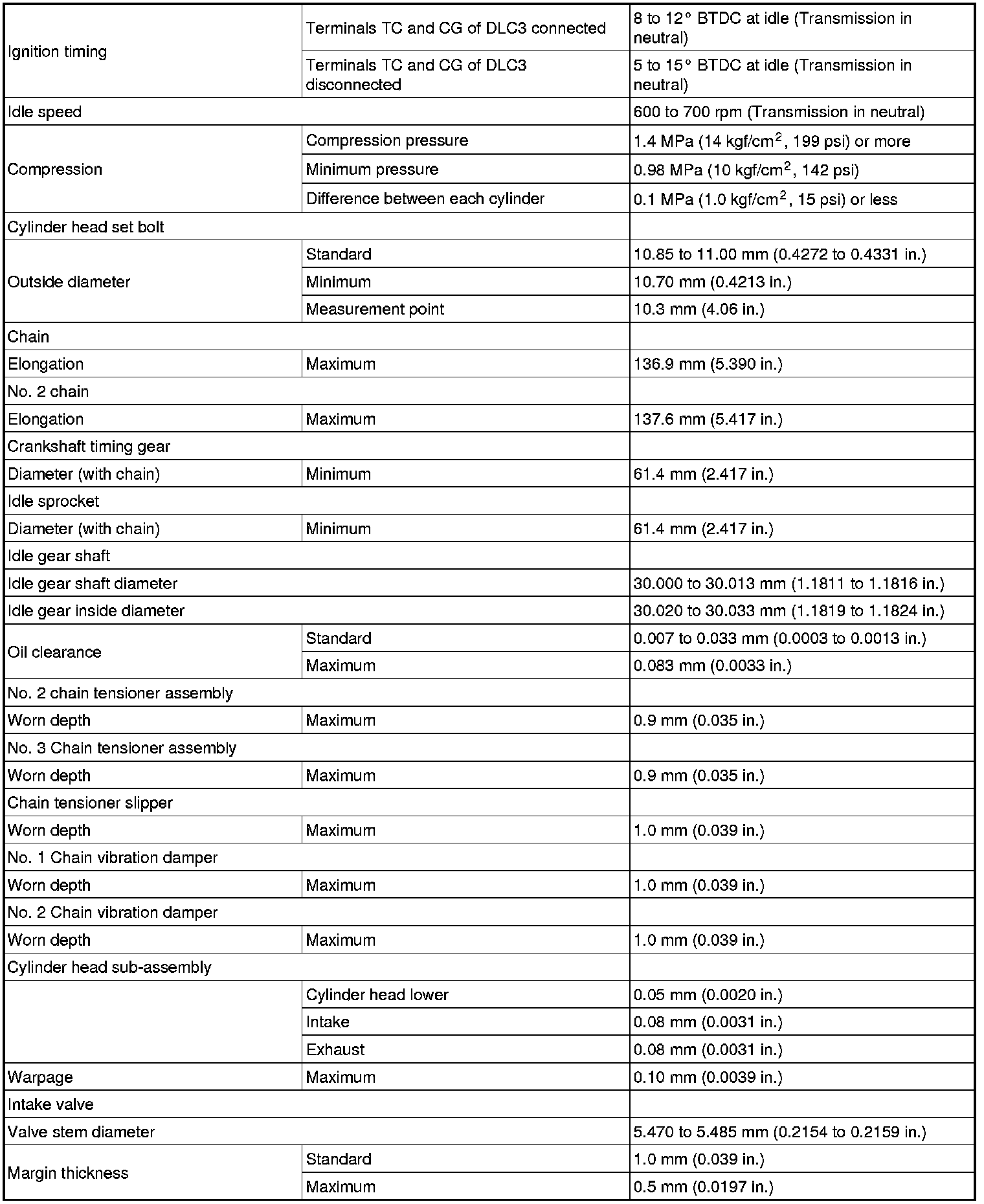 SERVICE SPECIFICATIONS: 2GR-FE ENGINE MECHANICAL: SERVICE DATA