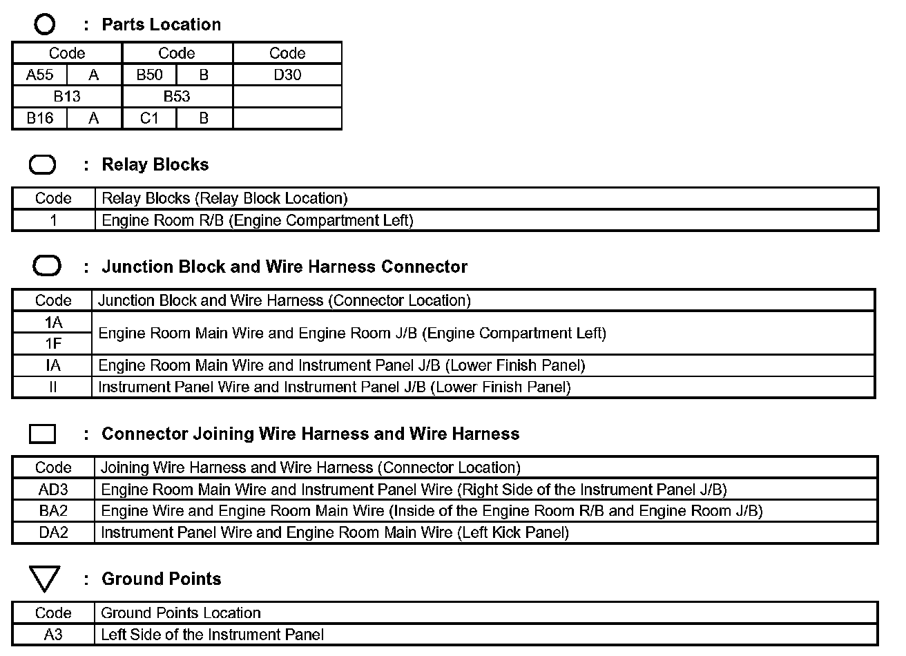 Locations: The locations of components, connectors, ground points, and splices referred to within these diagrams can be found at Vehicle Locations. Locations