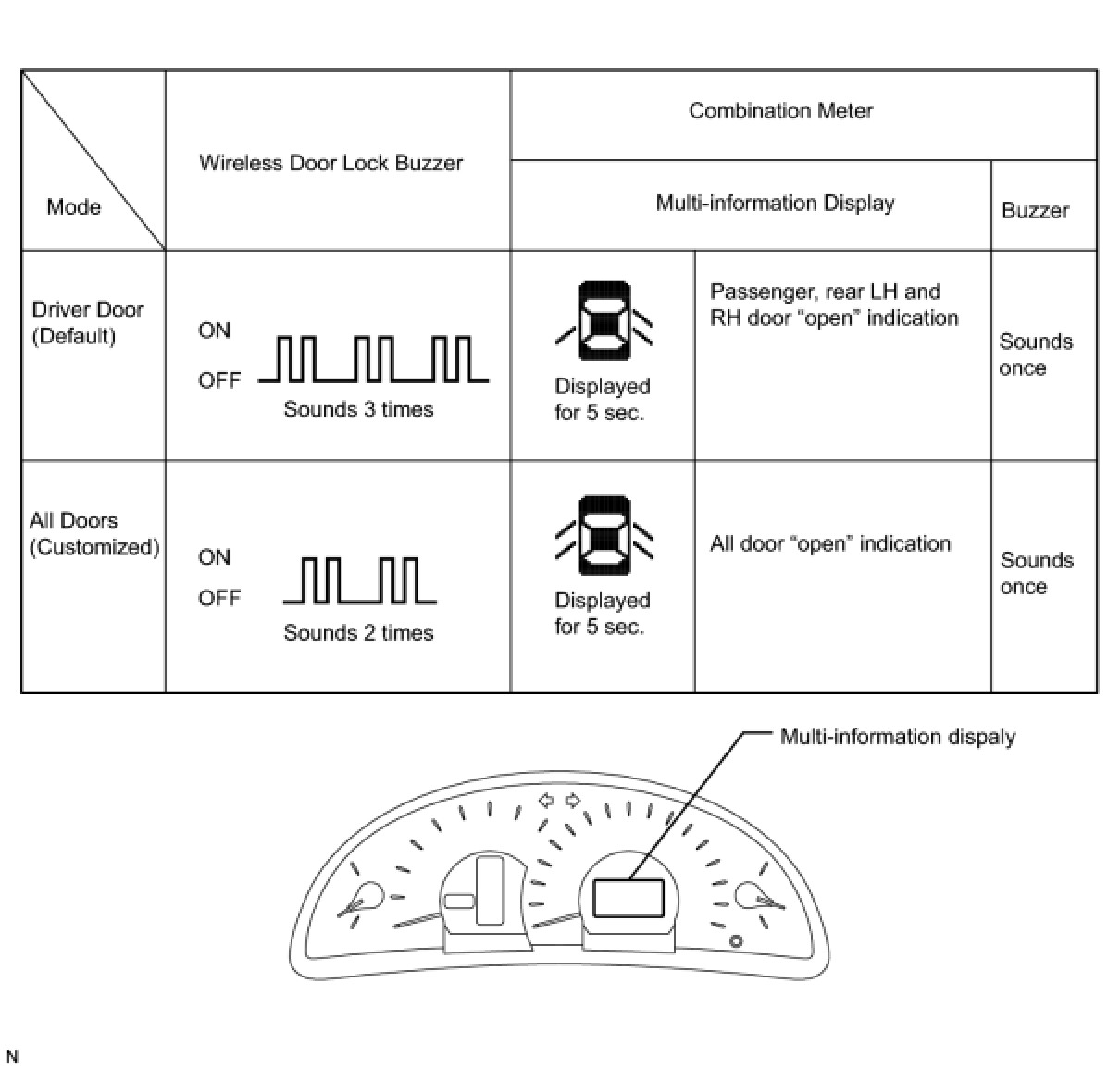 (c) The certification ECU sounds the buzzers of the wireless door lock buzzer and combination meter to inform the user that the mode has been switched.