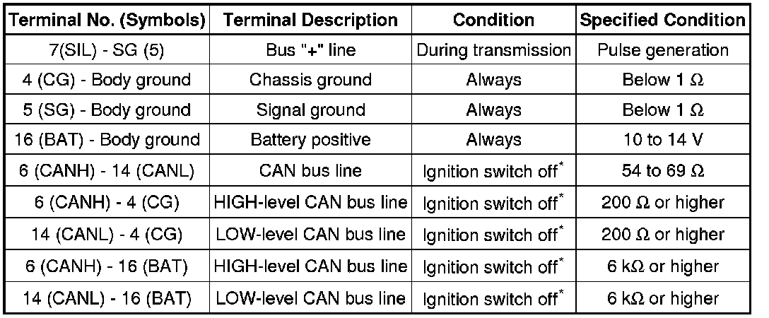 *: Before measuring the resistance, leave the vehicle as is for at least 1 minute and do not operate the ignition switch, any other switches or the doors.