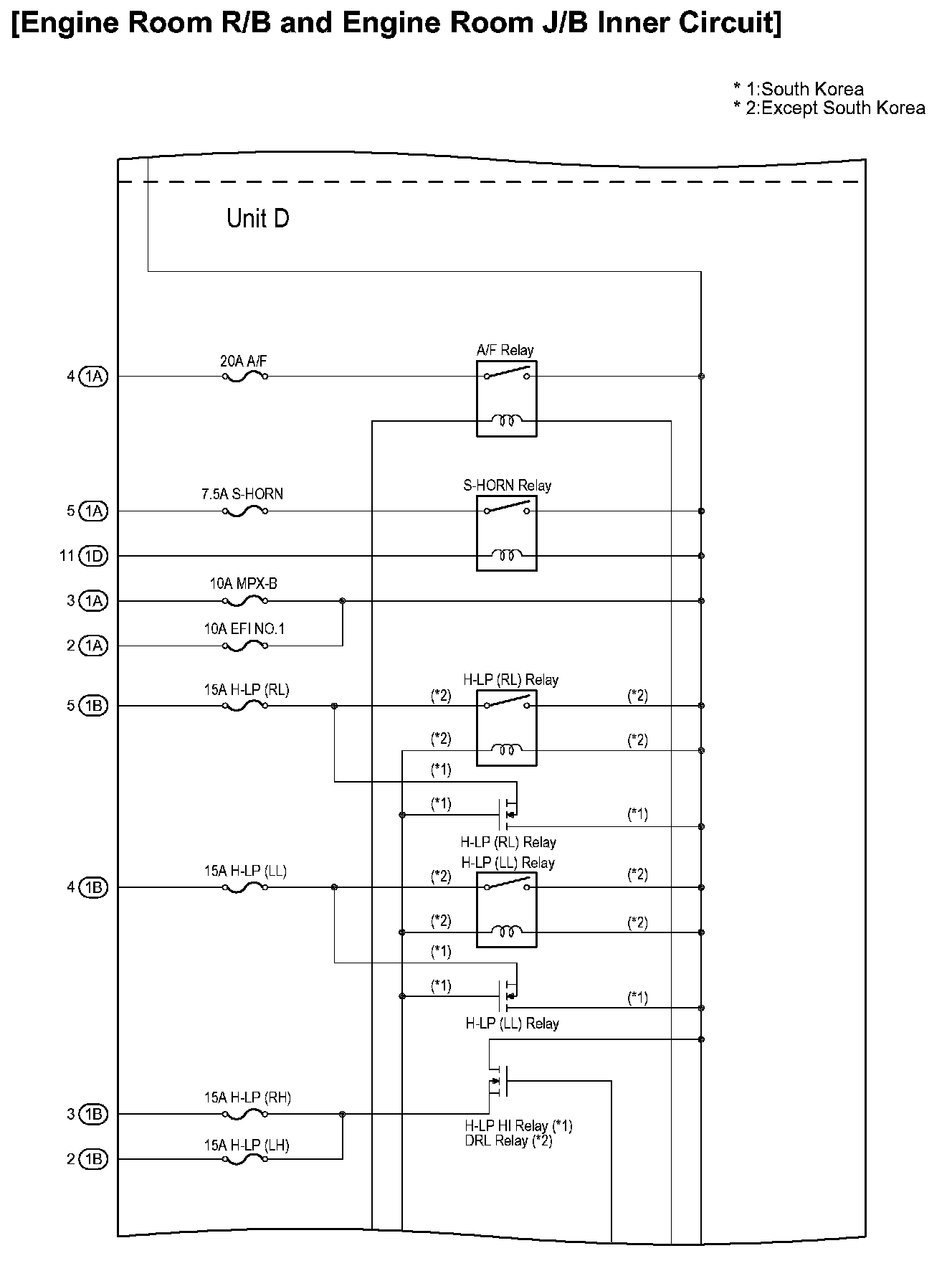 Engine Room R/B and Engine Room J/B Inner Circuit: