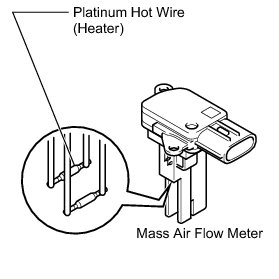 (a) Perform a visual check for any foreign matter on the platinum hot wire (heater) of the mass air flow meter shown in the illustration.