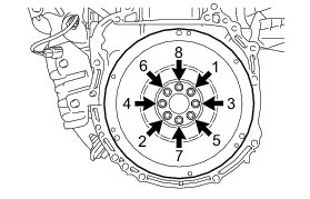 Uniformly tighten the 8 bolts in the sequence shown in the illustration.