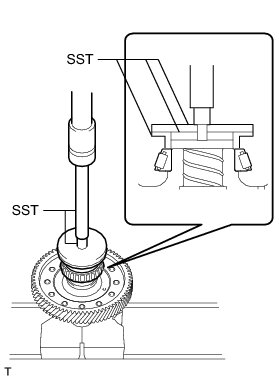 (a) Using SST and a press, press in a new front differential case rear tapered roller bearing to the differential case.
