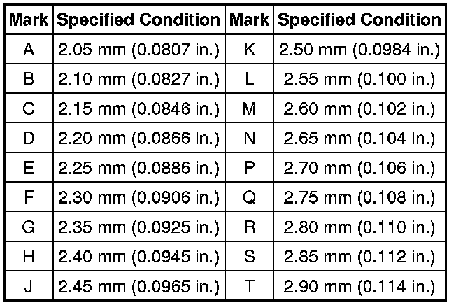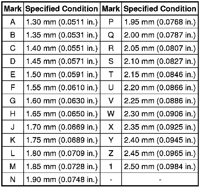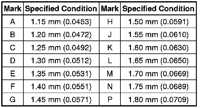 If the clearance is not as specified, replace the rear input shaft bearing shim with one of a different thickness. Use the table below to select a rear input shaft bearing shim which will ensure that the clearance is within the specification.