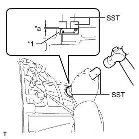 (a) Using SST and a hammer, tap in a new outer shift lever oil seal to the manual transmission case.