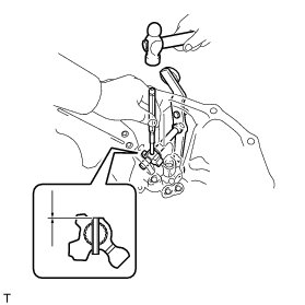 (b) Using a (5 mm) pin punch and hammer, tap in the inner shift lever slotted spring pin to the inner No. 1 shift lever.