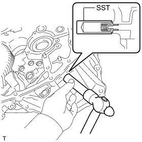 (a) Using SST and a hammer, tap in the breather plug to the front transaxle case.