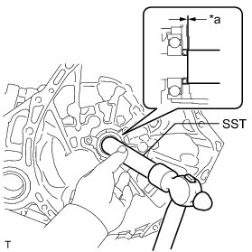 (a) Using SST and a hammer, tap in a new front transaxle case oil seal to the front transaxle case.