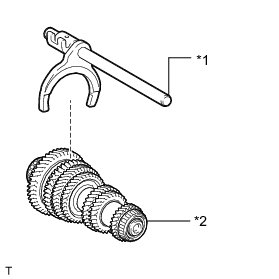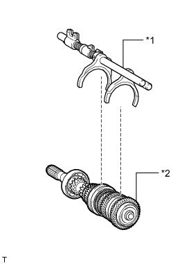 (d) Temporarily install the output shaft with No. 1 gear shift fork shaft to the input shaft assembly, and tie them with a rope or string.