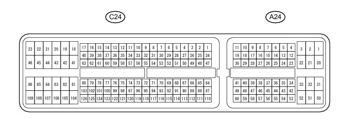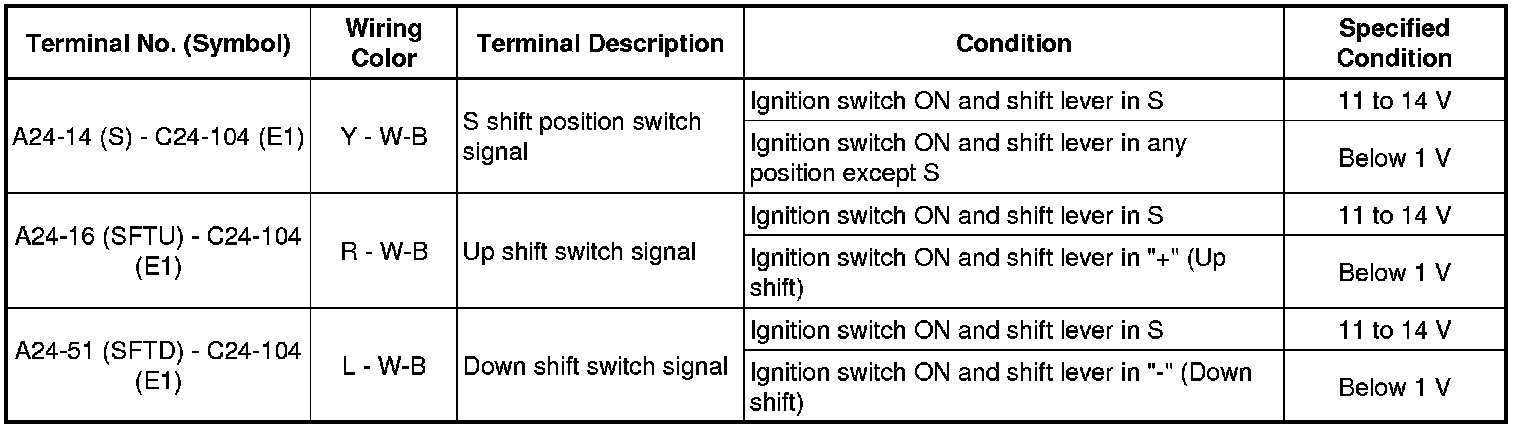 In the table, first follow the information under "Condition". Look under "Terminal No. (Symbol)" for the terminals to be inspected. The standard voltage between the terminals is shown under "Specified Condition".