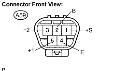 (1) Connect a positive (+) lead to terminal A59-3 (+2) of the connector, and a negative (-) battery lead to terminal A59-4 (E), and check that the motor operates at high speed (HI).