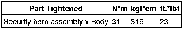 SERVICE SPECIFICATIONS: THEFT DETERRENT SYSTEM: TORQUE SPECIFICATIONS