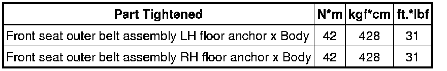 SERVICE SPECIFICATIONS: INTERIOR: TORQUE SPECIFICATIONS