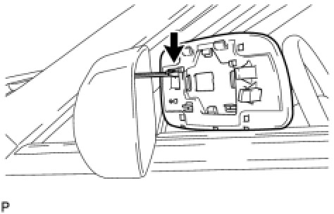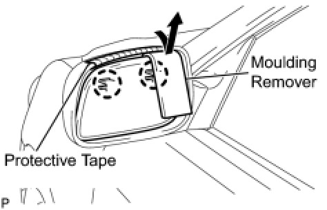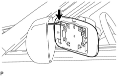 (b) Using a moulding remover, disengage the 2 claws at the upper part of the outer rear view mirror, and remove the outer rear view mirror glass.