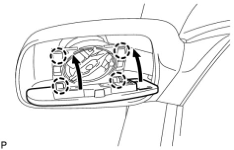 (c) Engage the 2 claws on the upper part of the outer rear view mirror glass to the outer rear view mirror as shown in the illustration.