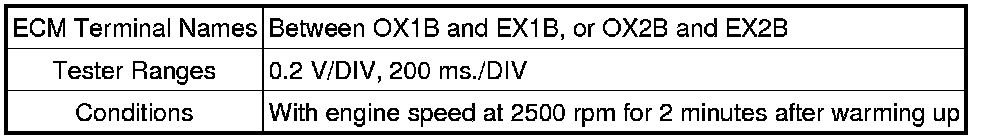 If the waveform is not similar to that shown in the illustration, check the waveform again after idling for 10 minutes or more.
