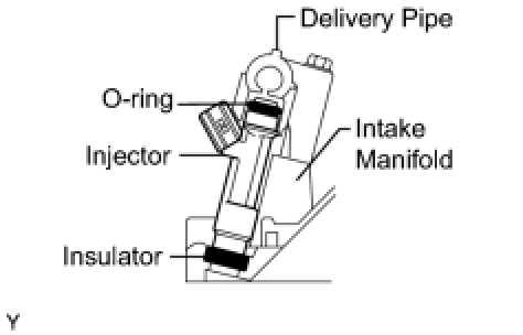 (c) Install the injector to the delivery pipe and the lower intake manifold as shown in the illustration.