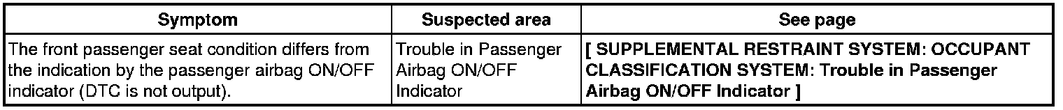 SUPPLEMENTAL RESTRAINT SYSTEM: OCCUPANT CLASSIFICATION SYSTEM: PROBLEM SYMPTOMS TABLE