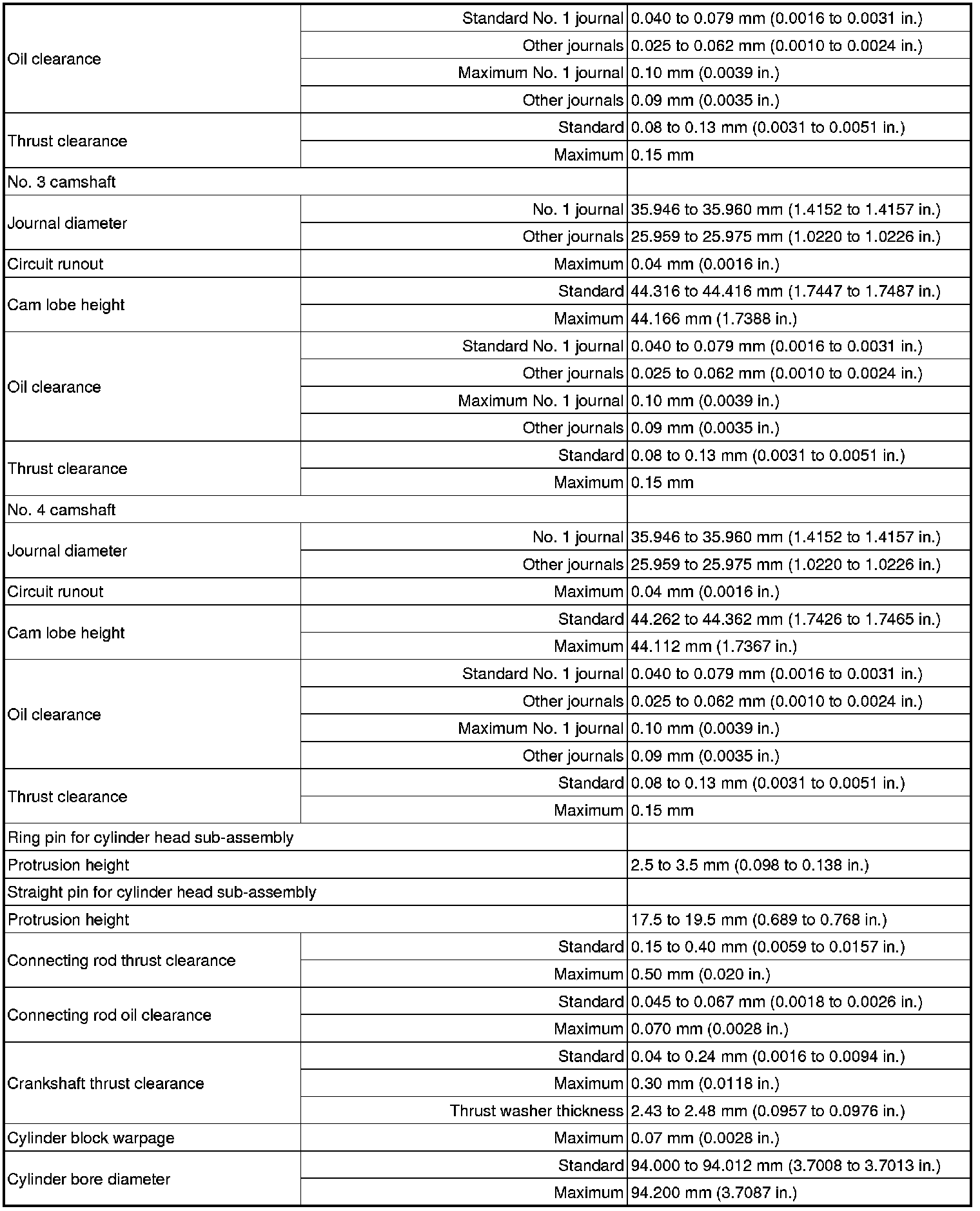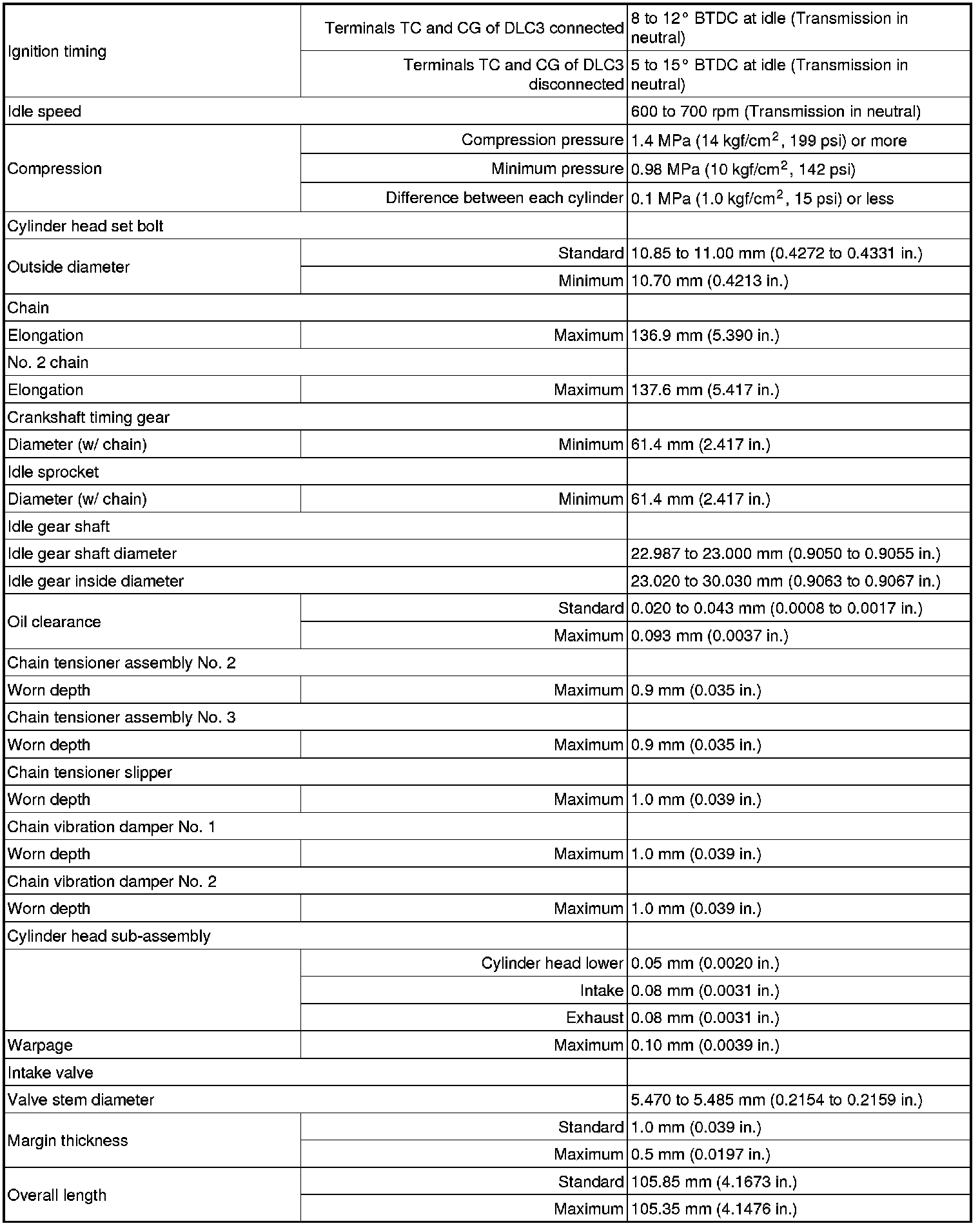 SERVICE SPECIFICATIONS: 2GR-FE ENGINE MECHANICAL: SERVICE DATA