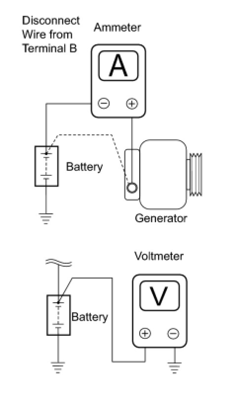 (2) Connect the positive (+) lead of the ammeter to terminal B of the generator.