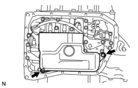 (a) Remove the 2 bolts and oil strainer assembly from the valve body assembly.