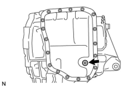 (a) Using a hexagon wrench (6 mm), remove the overflow plug from the automatic transaxle oil pan sub-assembly.