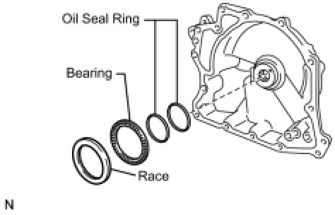 (i) Remove the thrust needle roller bearing and thrust needle roller race from the transaxle rear cover.
