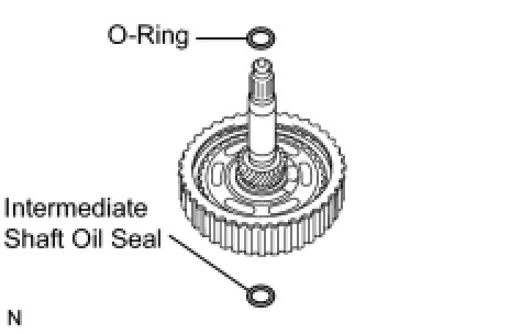 (c) Using a screwdriver, remove the intermediate shaft oil seal ring from the direct No. 2 direct clutch piston.
