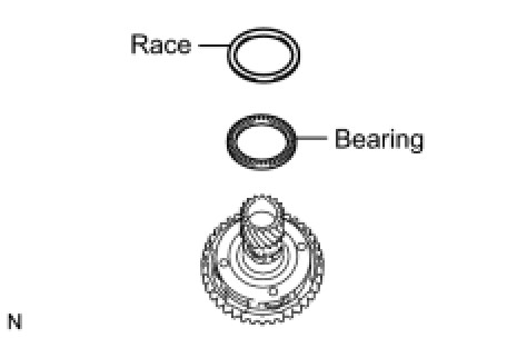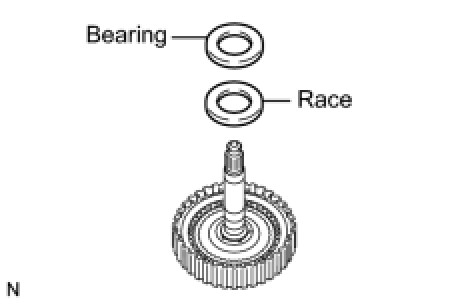 (b) Remove the thrust needle roller bearing and thrust needle roller race from the underdrive planetary gear assembly.