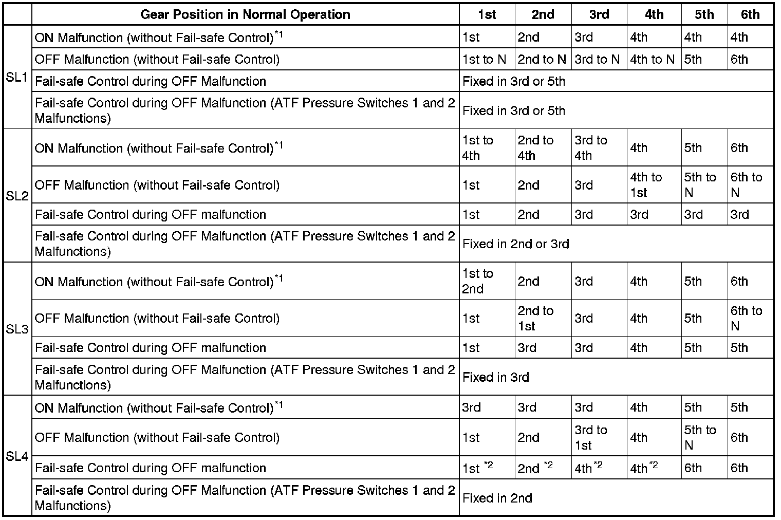 *1: Fail-safe control is not actuated when the ON malfunction occurs.