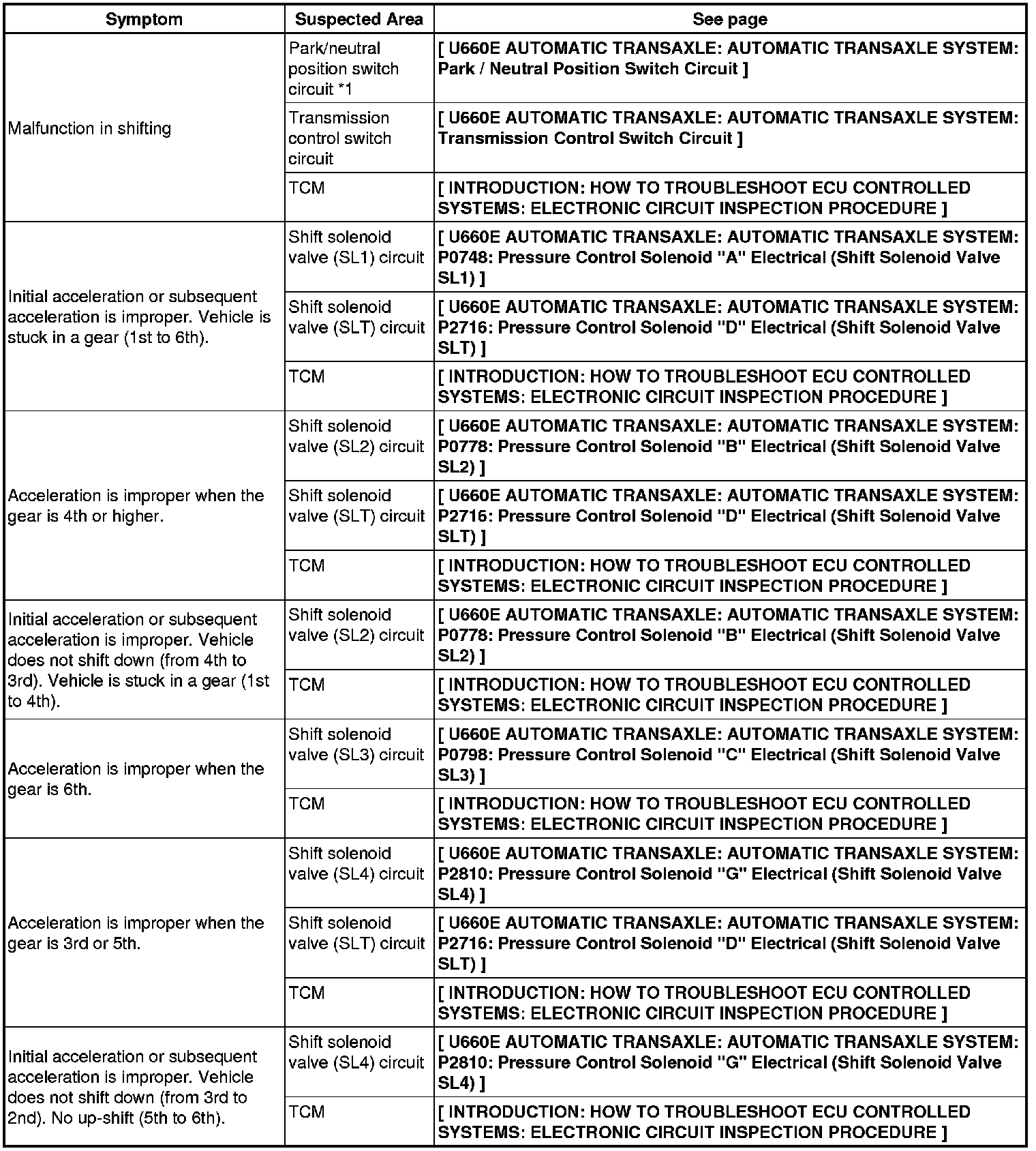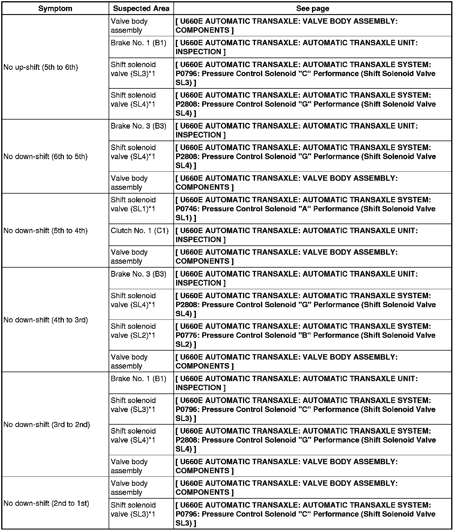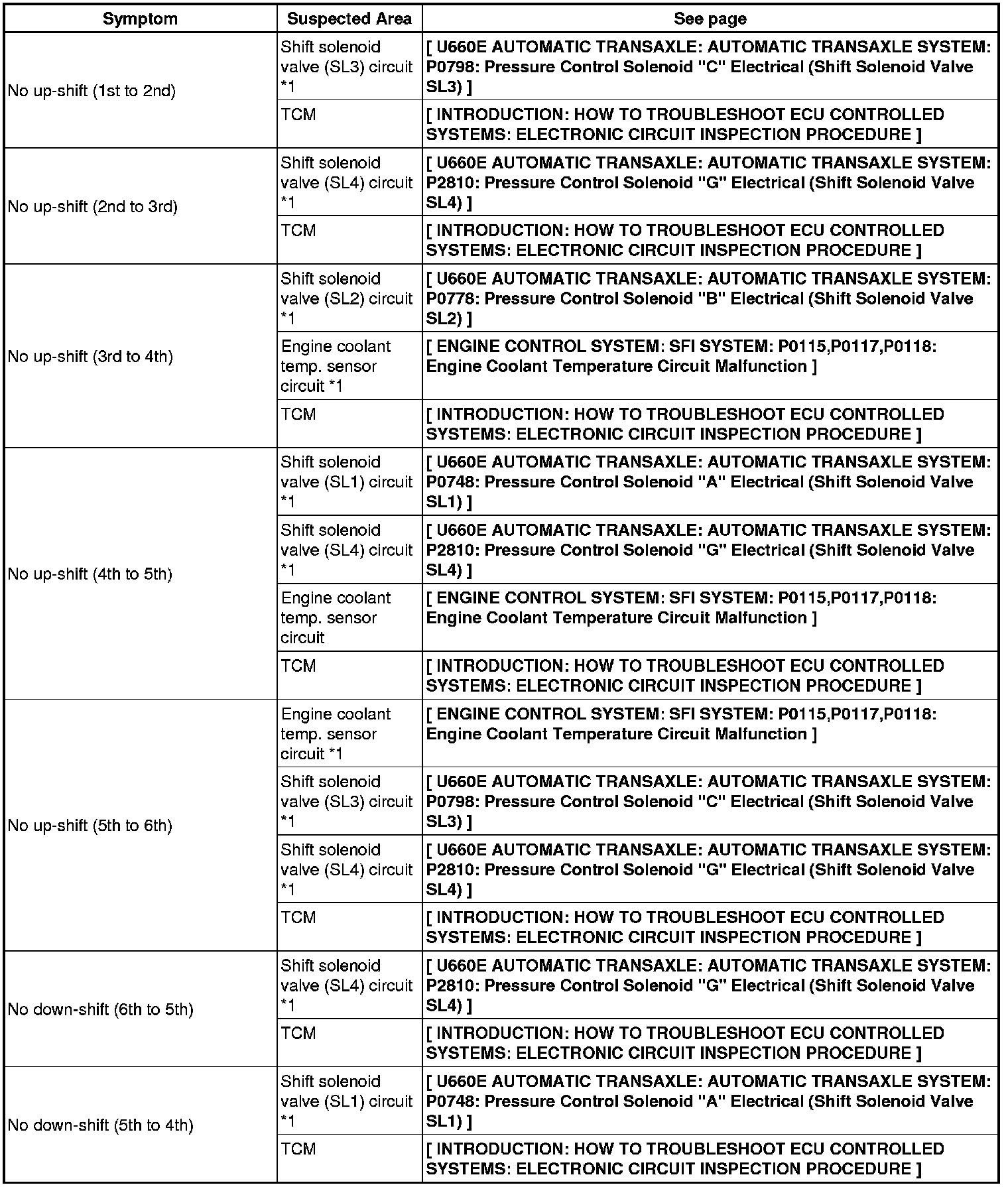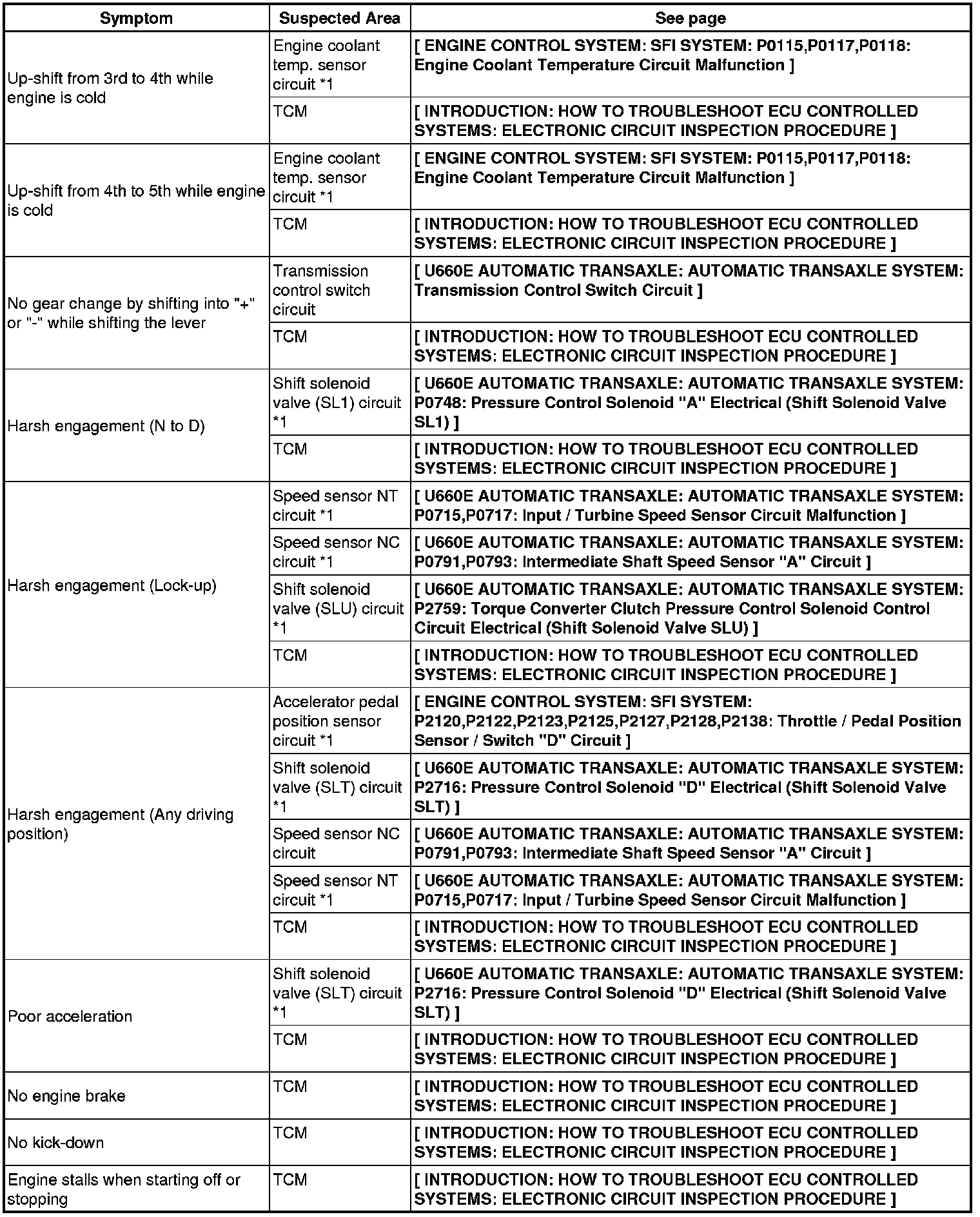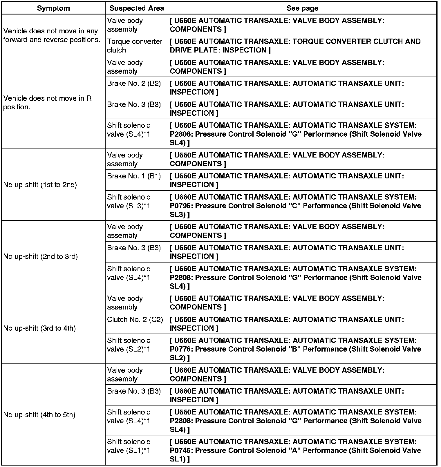 U660E AUTOMATIC TRANSAXLE: AUTOMATIC TRANSAXLE SYSTEM: PROBLEM SYMPTOMS TABLE