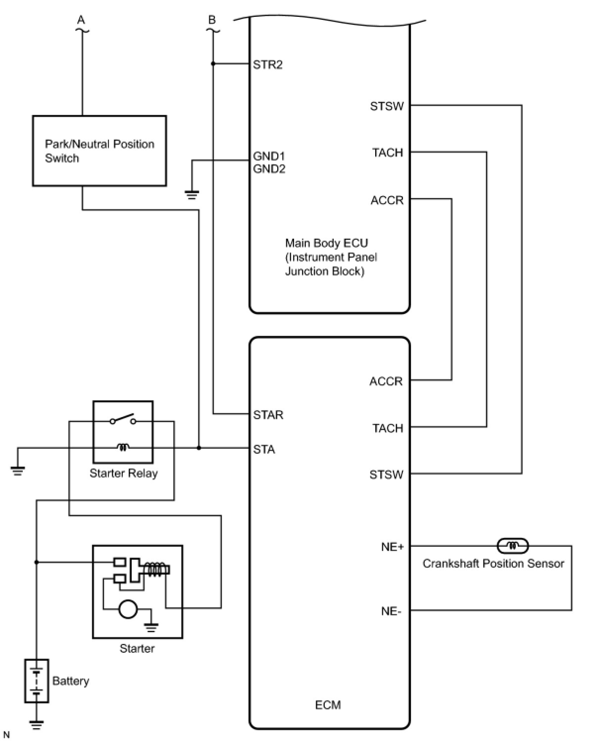 The main body ECU (instrument panel junction block) can detect malfunctions in the push-button start function when the power source mode is on (IG).