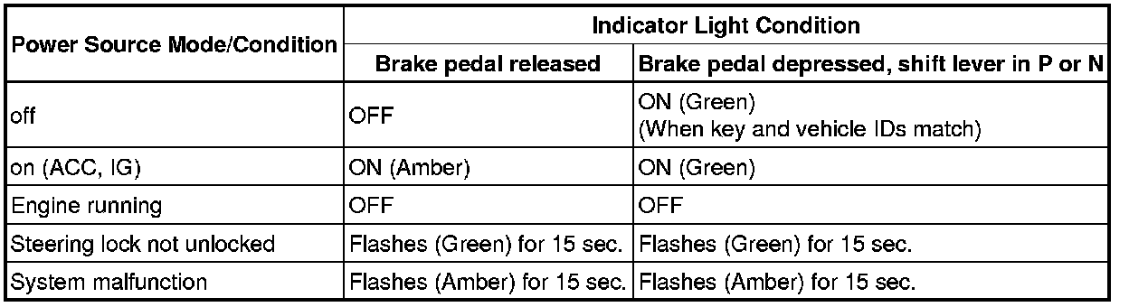 The amber and green LEDs are for the indicator lights. The driver can check the present power source mode and whether the engine can start in accordance with the illumination state of the indicator light.