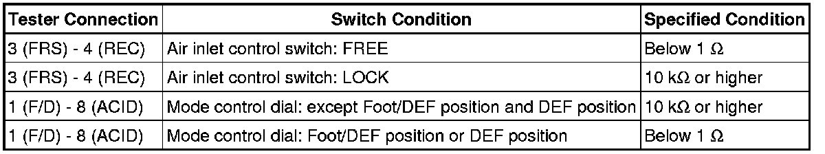 If the result is not as specified, replace the No. 1 heater control (air inlet control switch).