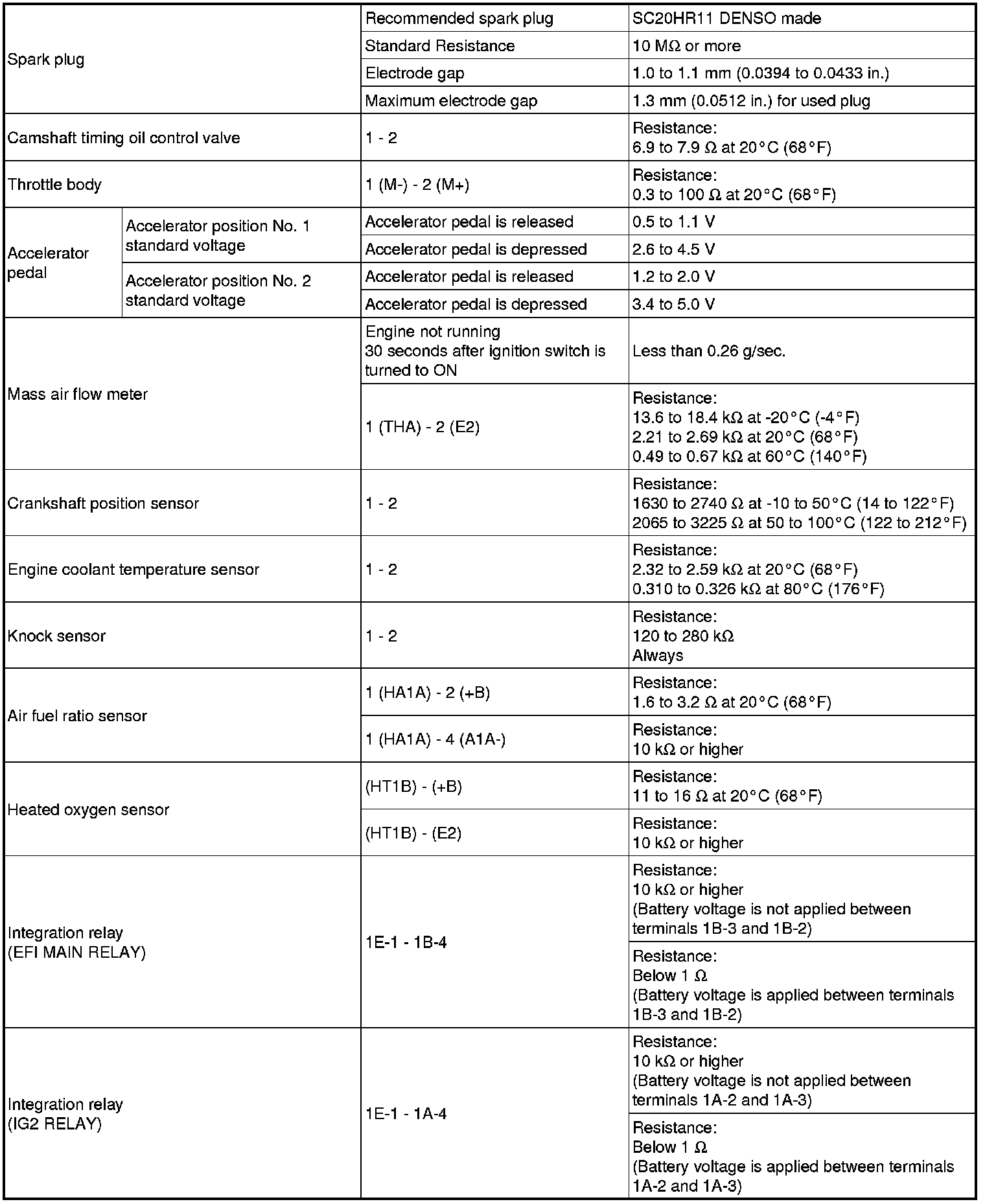 SPECIFICATIONS: 2ZR-FE ENGINE CONTROL: SERVICE DATA