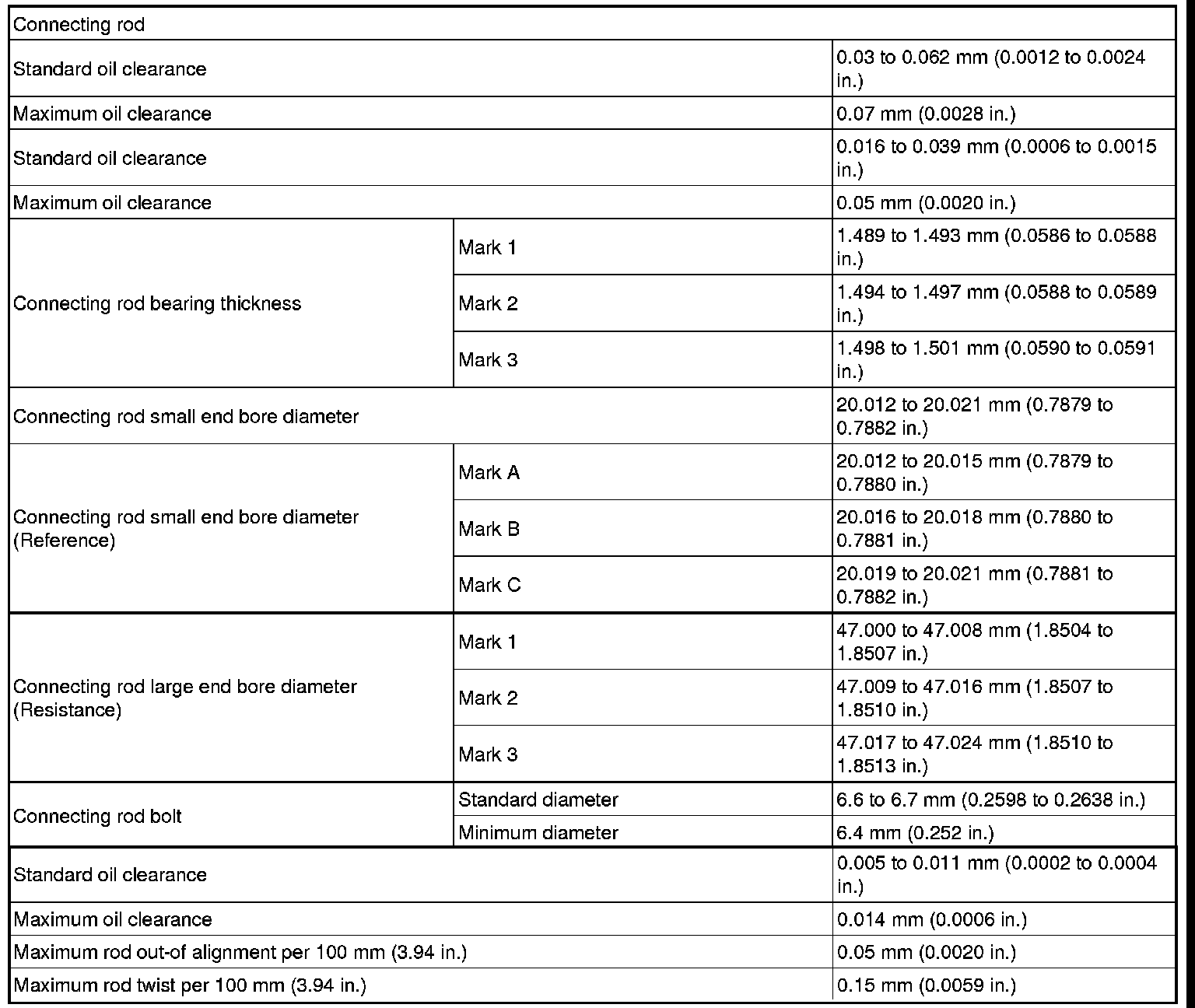 CONNECTING ROD SIDE CLEARANCE, OUT-OF-ROUND, & DIAMETER