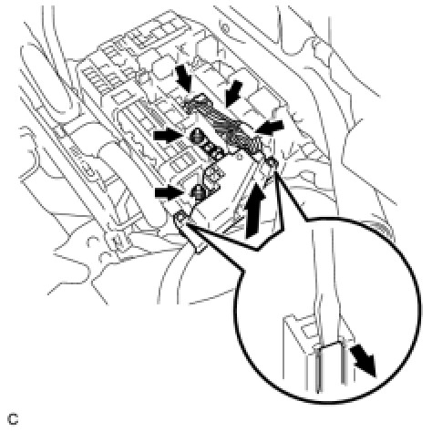 (a) Disconnect the 3 connectors from the engine room relay block.