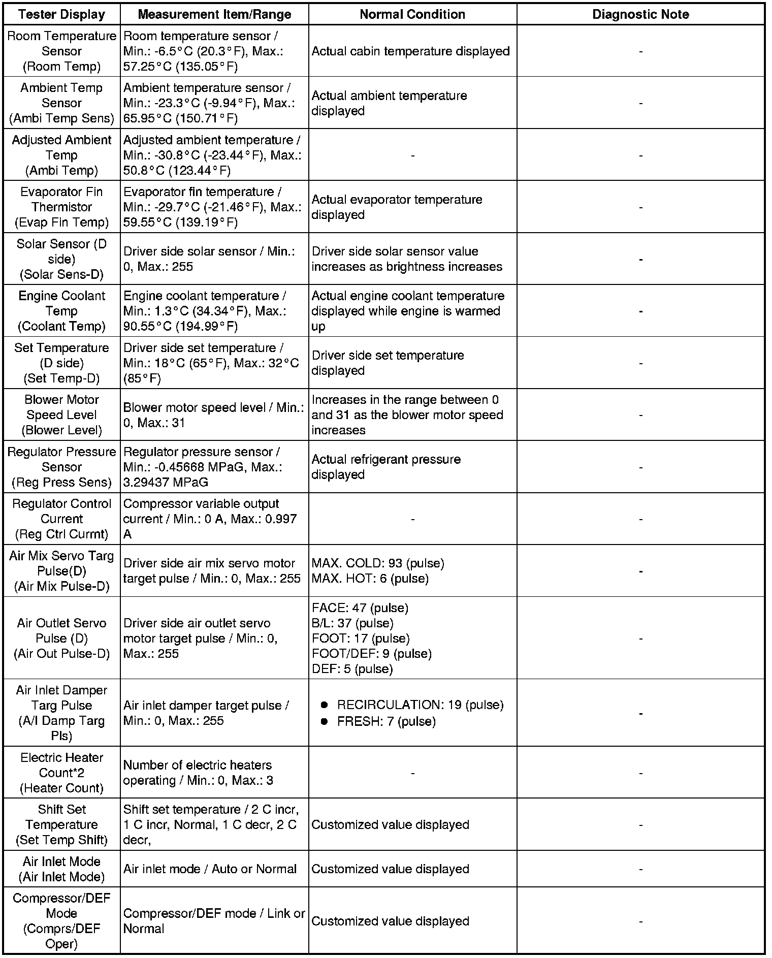 HEATING / AIR CONDITIONING: AIR CONDITIONING SYSTEM (for Automatic Air Conditioning System): DATA LIST / ACTIVE TEST