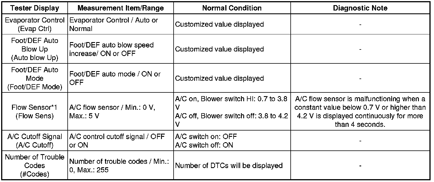 (d) Enter the following menus: Body Electrical / Air Conditioner / Data List.