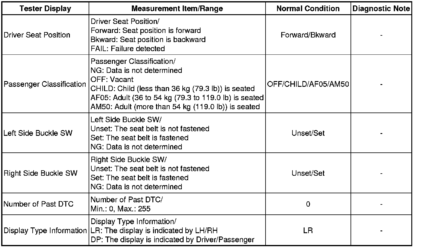 1. DATA LIST FOR CENTER AIRBAG SENSOR ASSEMBLY